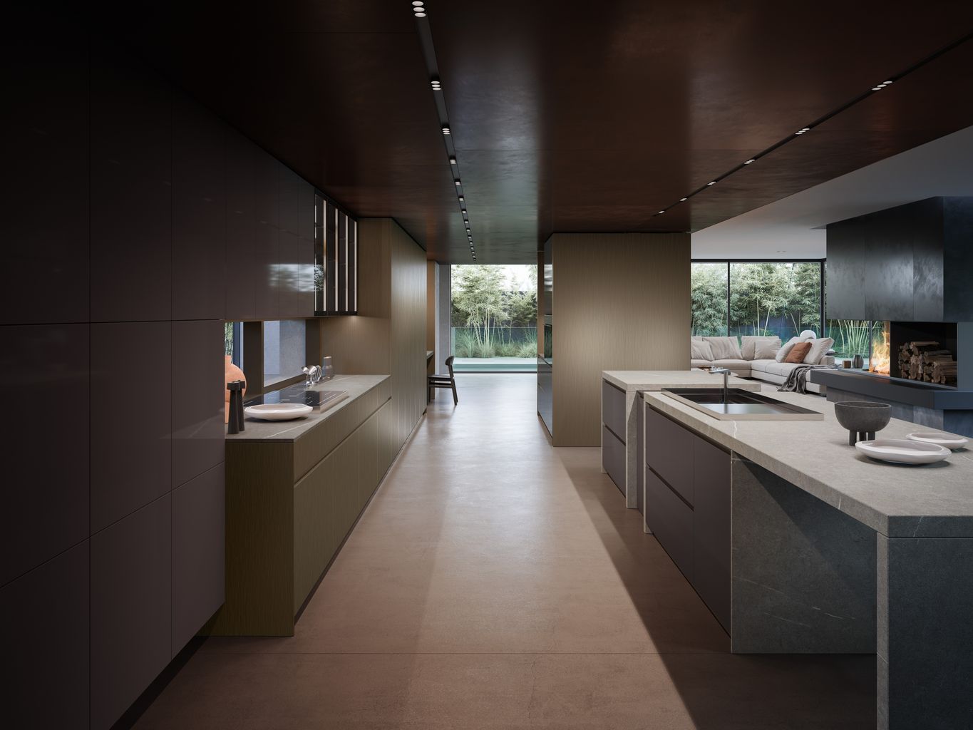 Un projet qui s'intègre harmonieusement à l'architecture environnante, transformant l'ambiance en une expérience à la fois esthétique et fonctionnelle. Les finitions ont été méticuleusement choisies pour magnifier la beauté et l'élégance de la cuisine. Le mélaminé Lamina Brunito, avec sa surface rayée évoquant les reflets d'une plaque de métal, apporte une touche de modernité et de raffinement. Le laqué brillant Moka ajoute une note chaleureuse à la composition, créant un contraste visuel séduisant. Le plan en grès, à la fois riche et sophistiqué, complète l'atmosphère en apportant une touche de luxe et de raffinement.
